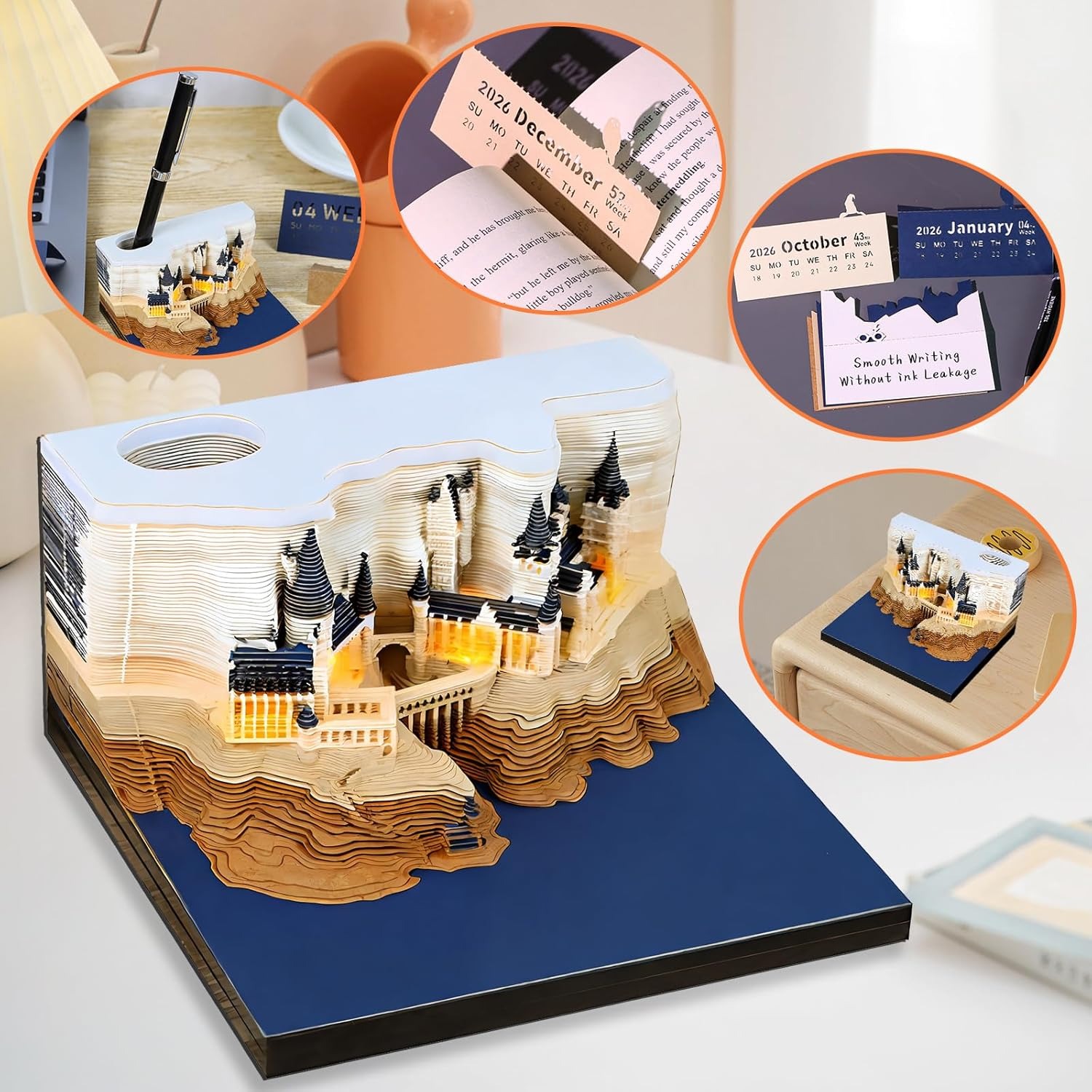 Stunning 3D Design: The 2026 Time Piece Calendar features a unique 3D design that transforms into an enchanting Magic Castle, allowing you to experience the beauty of paper art with each page you tear off.
