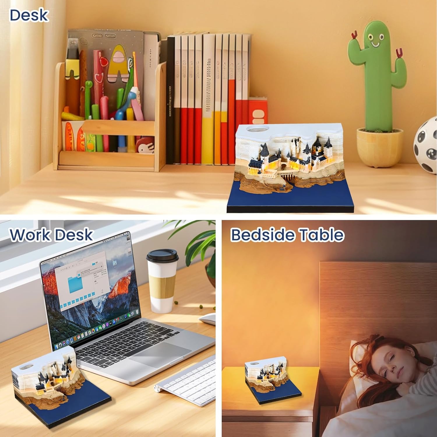 Ambience and Practicality: With its enchanting glow at night, the Magic Castle creates a cozy ambiance when placed by your bedside, combining high aesthetic appeal with practical functionality as a beautiful night light.