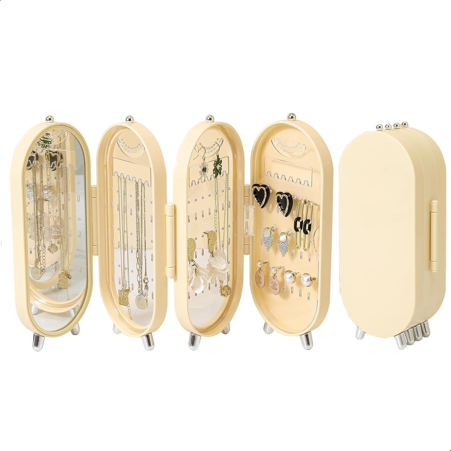 ✨Foldable & Dustproof Design : Maximize space effortlessly with our collapsible jewelry organizer! The fully enclosed design shields your earrings, necklaces, and accessories from dust and tarnish, while the compact folded size makes storage a breeze.