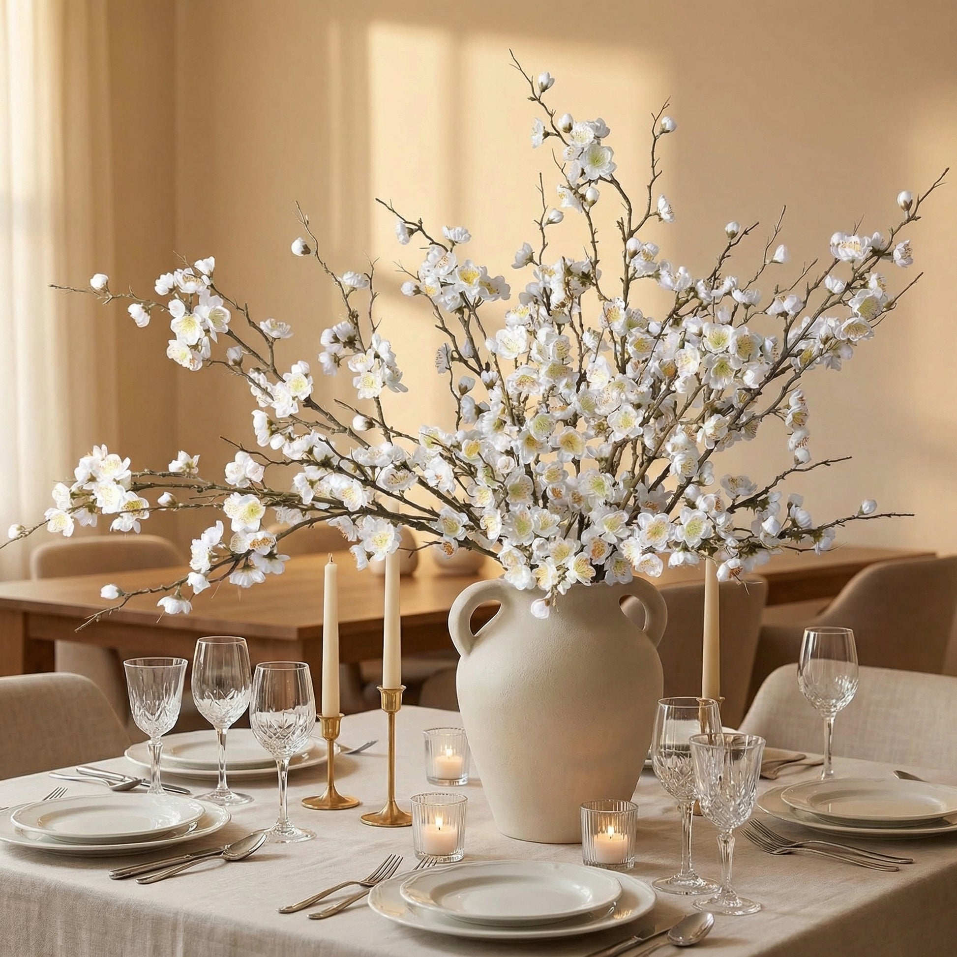 Bring timeless spring elegance into your home with these Artificial Cherry Blossom Branches. Designed with delicate white blossoms and lifelike textured stems, these faux branches capture the beauty of real cherry blossoms—without the upkeep.