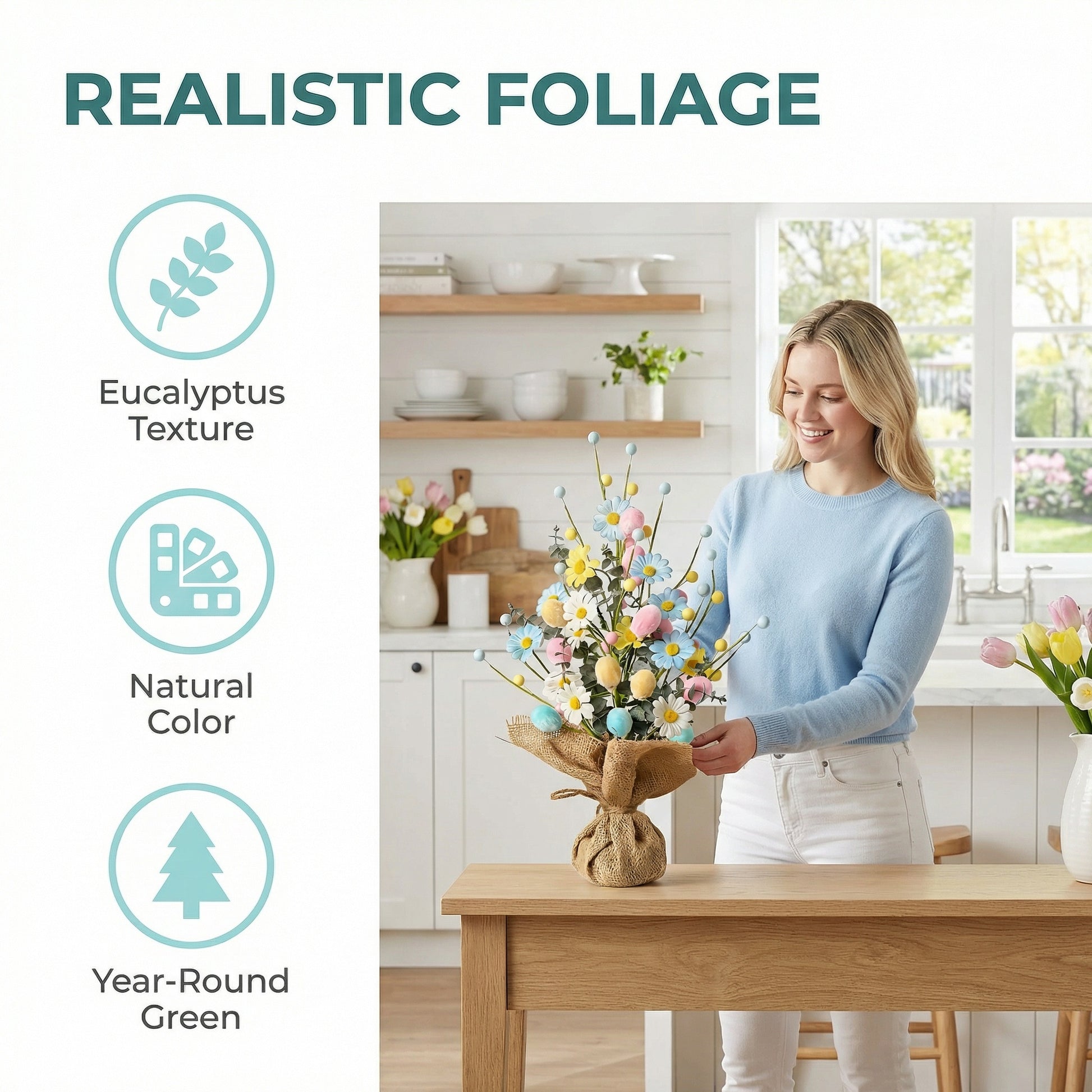 No watering, fading, or shedding—enjoy effortless Easter and spring décor year after year.