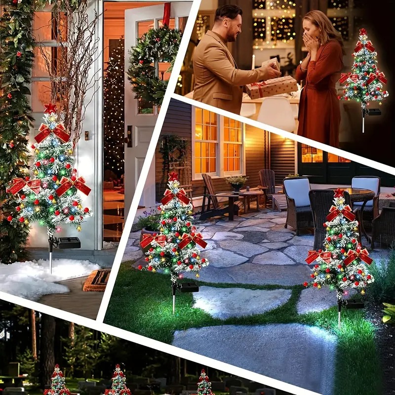 【Easy to Install & Christmas Lights Waterproof】 - The Solar Christmas Tree Lights Decorations are quikly to install because no cables or plugs are required, just grow solar outdoor lights in your garden, powered by solar panels. With the IP65 waterproof Christmas tree lights design, the solar lights outdoor decor are specially designed to withstand bad weather conditions, no more worry about rain, snow, frost, or sleet.