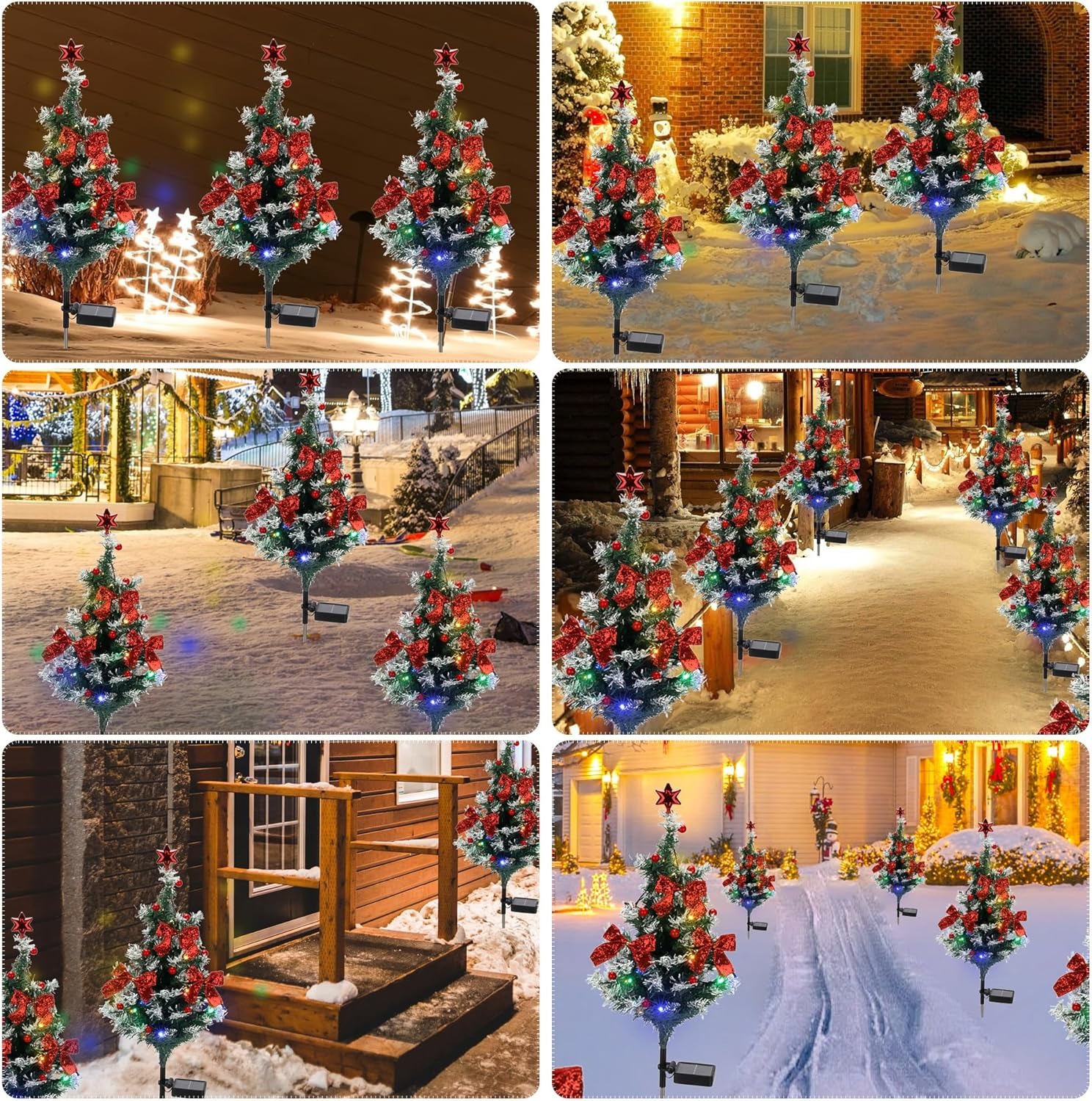 【Newest Version & Christmas in September】 - Purchase the upgraded solar Christmas pathway lights outside trees and you will get 1red star, 20 berries, 10 bells and 3 bows per tree with 20 LED string lights in 4 colors (blue ,red , green , warm yellow ). You can decorate a cedar Christmas tree, brighter than other outdoor solar lights decorations, so that you can enjoy the beautiful solar Christmas lights outdoor decorative all night.