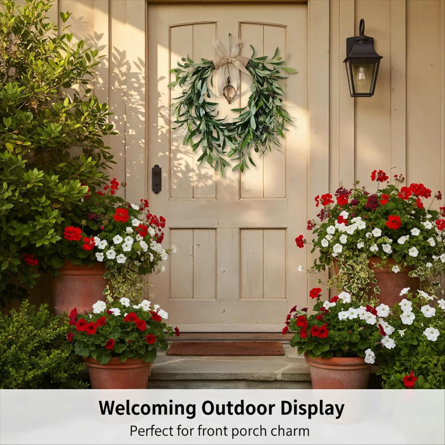 - Durable & Weather-Resistant: Made from high-quality silk and plastic materials, this wreath retains its vibrant color and shape indoors or outdoors. No wilting or maintenance required—enjoy everlasting beauty in sun, rain, or wind